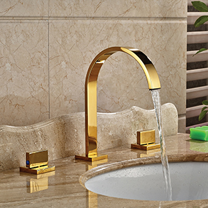 Three Hole Basin Mixer Deck Mounted Short Body Gold PVD Finish