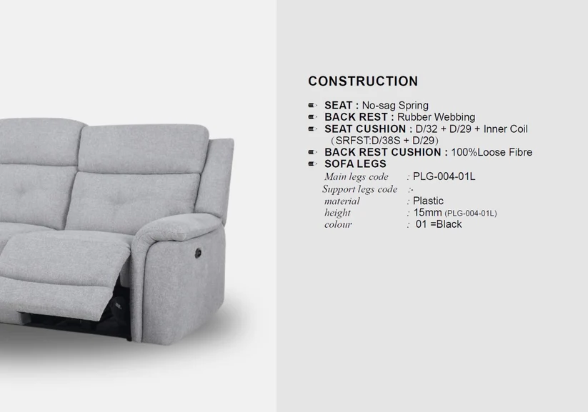 | Description : | recliner sofa provides exceptional comfort and support with narrow padded armrests |
