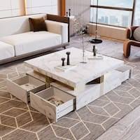 | Description : | Modern White Square Storage Coffee Table Stone Top with 4 Wood Drawers |